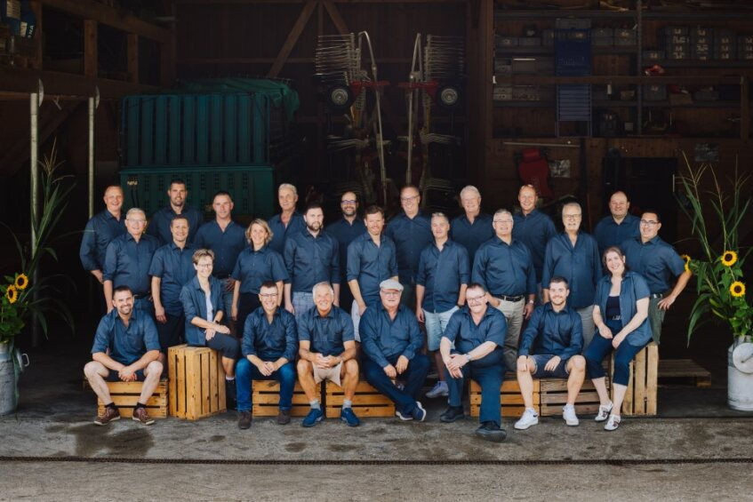 Teamanlass aller OK- und Sub-OK-Mitglieder mit Begleitung am 15. August 2025 auf dem Hof Vorderrieden ob Matzendorf